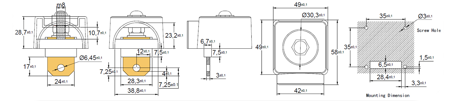 Housing: PA66 material; Flamability rating is UL94 -V0.